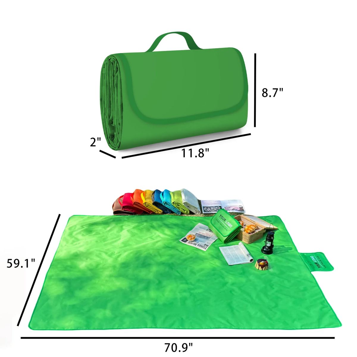 Additional InformationDurable polyester picnic rug, size 70.9" x 59.1", waterproof and sandproof, lightweight and portable for outdoor use.